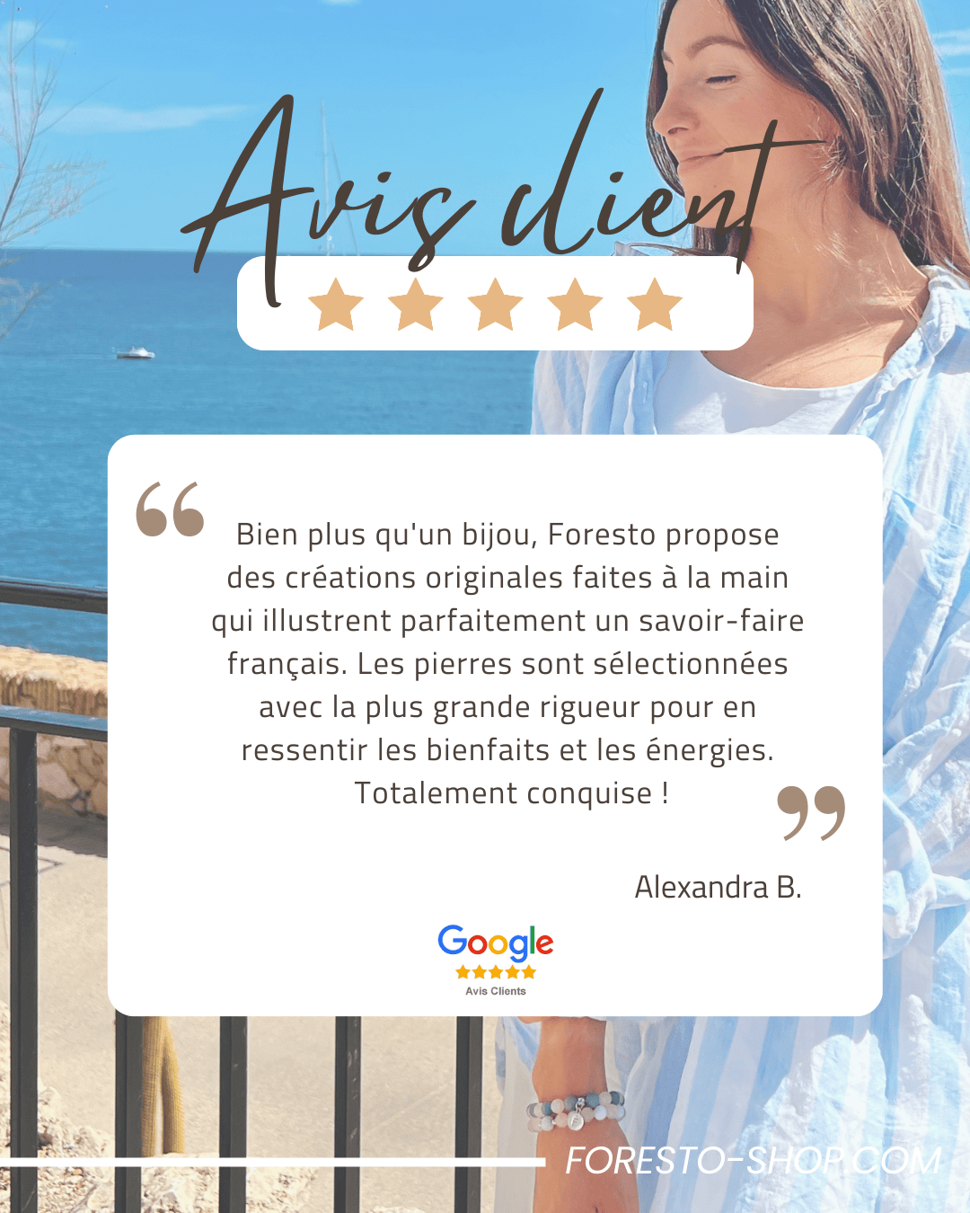 Je cherchais un bijou qui ait du sens et j’ai trouvé bien plus que ça. Mon bracelet m’accompagne dans mes défis personnels. Merci Foresto !
